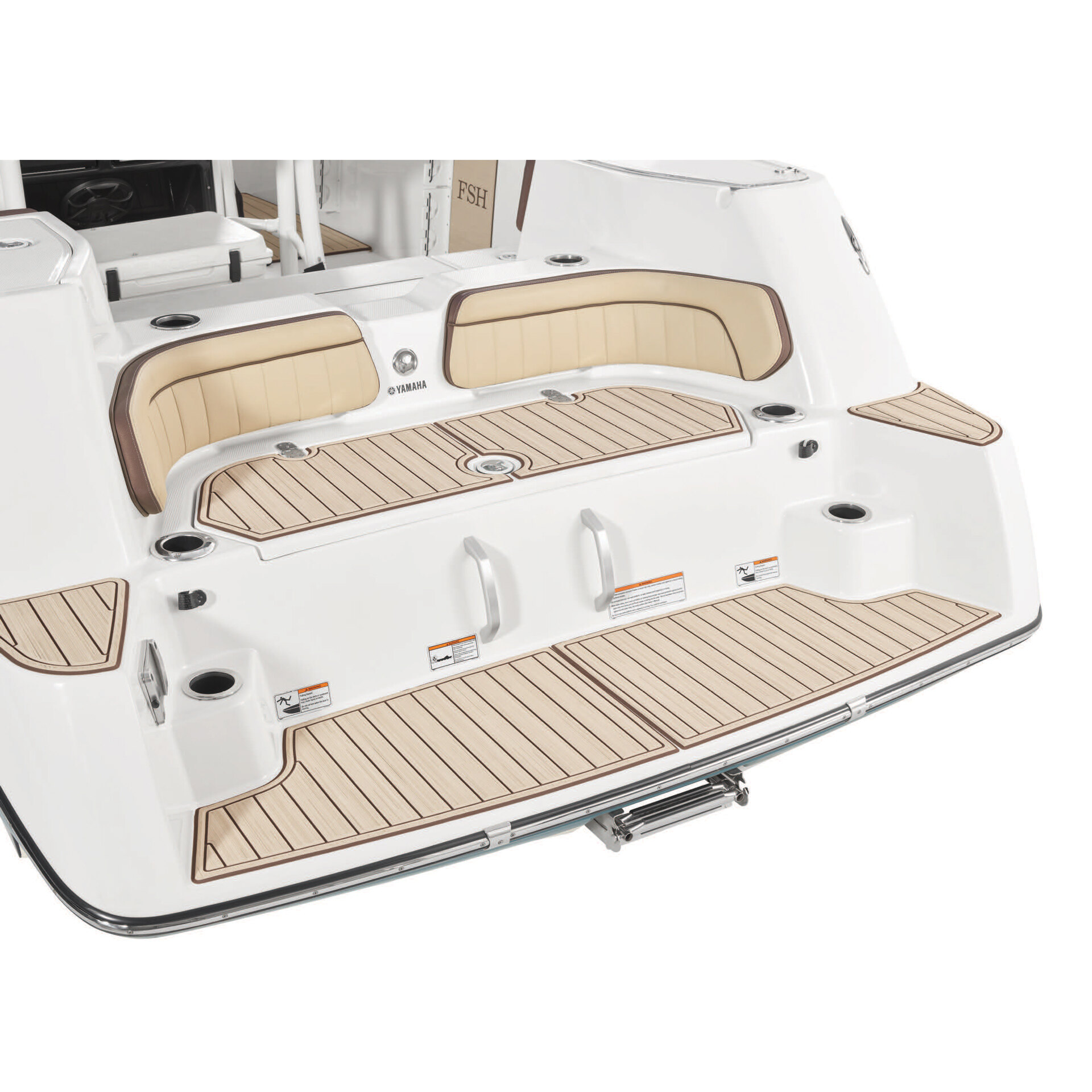 Marine Mat® flooring adds an additional non-skid area and padding to the swim platform, providing grip, comfort, and safety when moving around the rear of your Yamaha FSH boat.