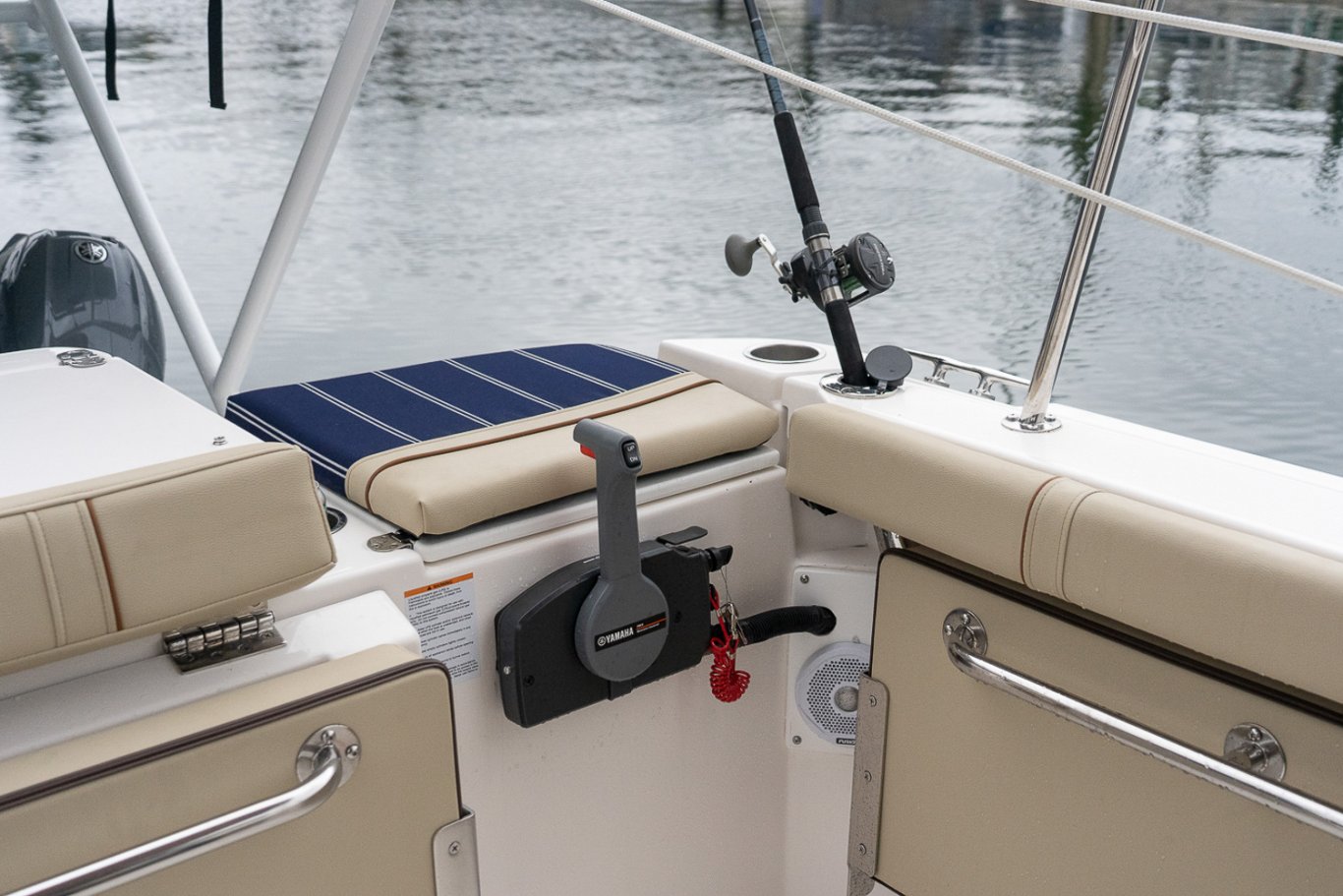- Auxiliary Motor Package: 9.9 HP, tie bar steering w/ remote throttle control