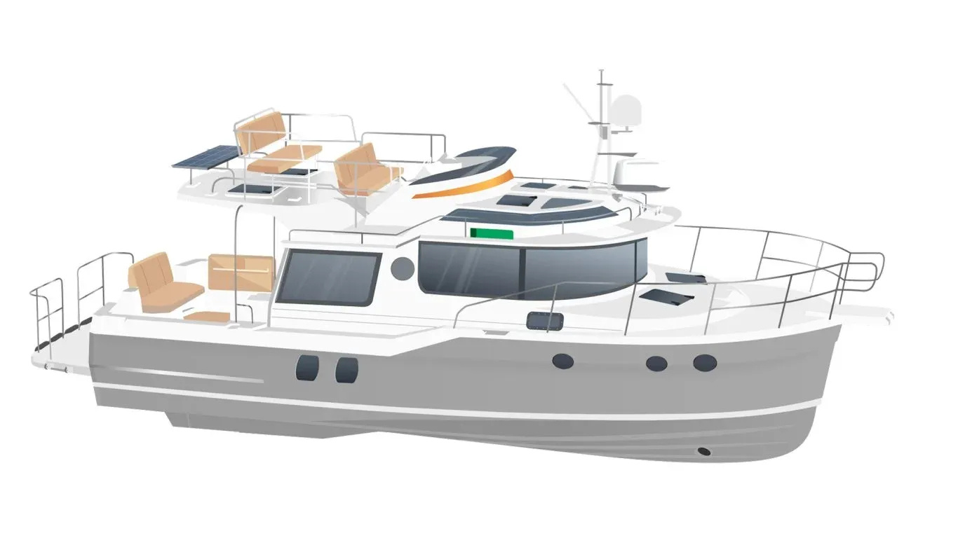The more modern styling of the R-29 CB features a curved front window and an overhead glass atrium that provides exceptional visibility from the helm station and salon area. An ingenious aft cockpit seating arrangement includes a reversible seat, port and starboard jump seats and a teak table for outside dining. The opening cabin bulkhead with reversible seat provides additional cockpit seating while bringing the outside-in.