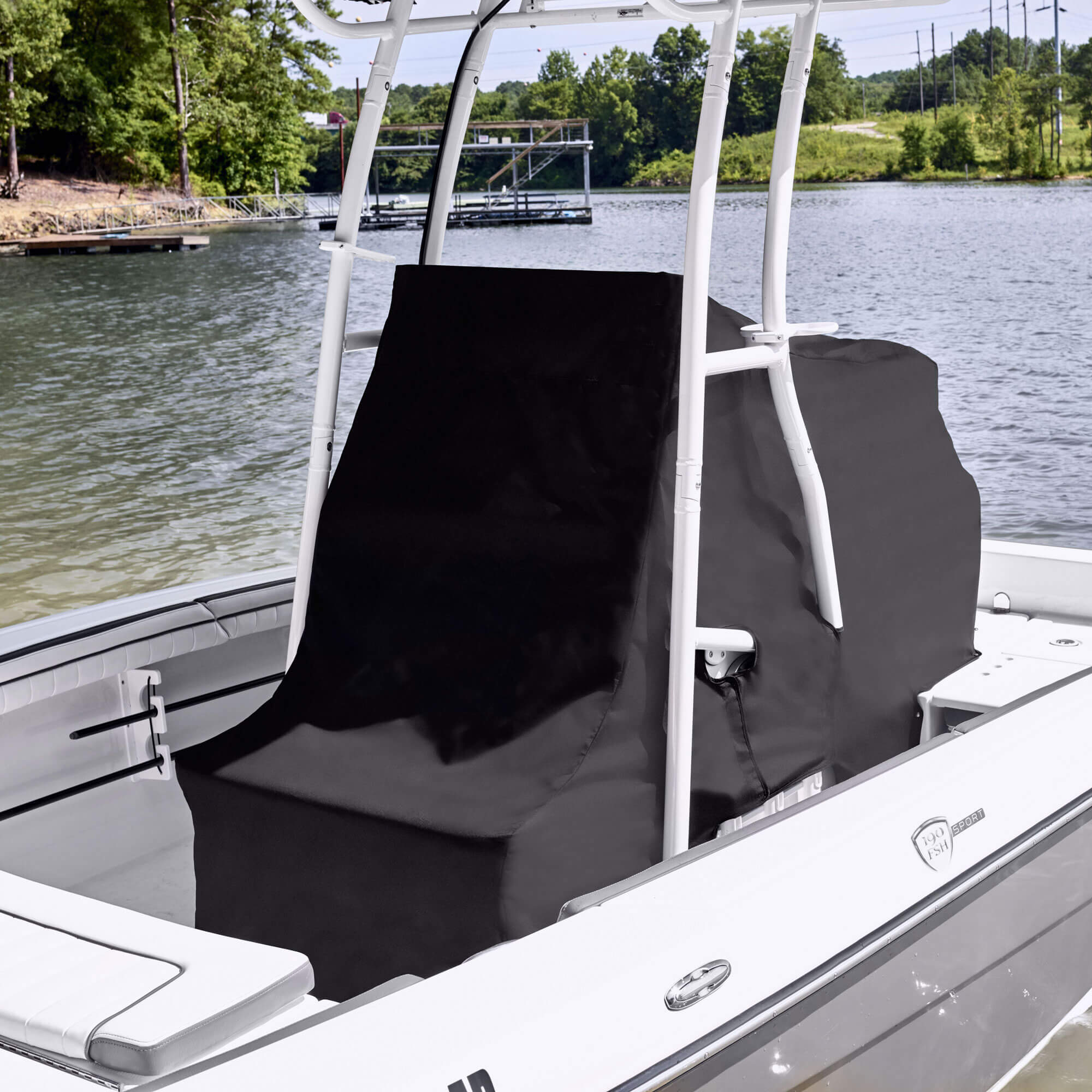Snaps into place, and can easily be stored in the boat when not in use