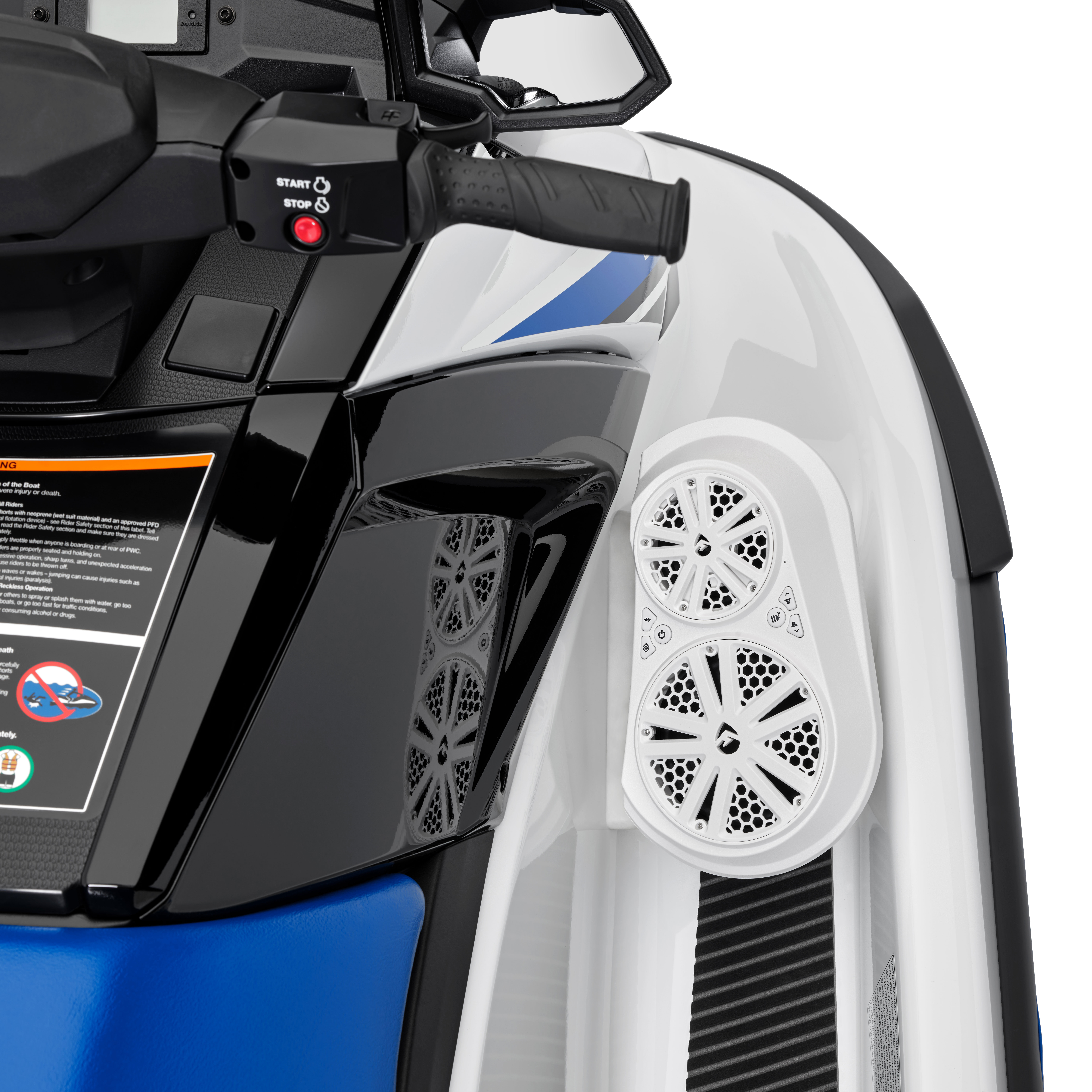 Removable, floating, wireless Bluetooth footwell speakers with new EcoCast technology. Mounting brackets are permanently installed on unit. Features a quick-release for charging, listening on the beach or while floating on the water.