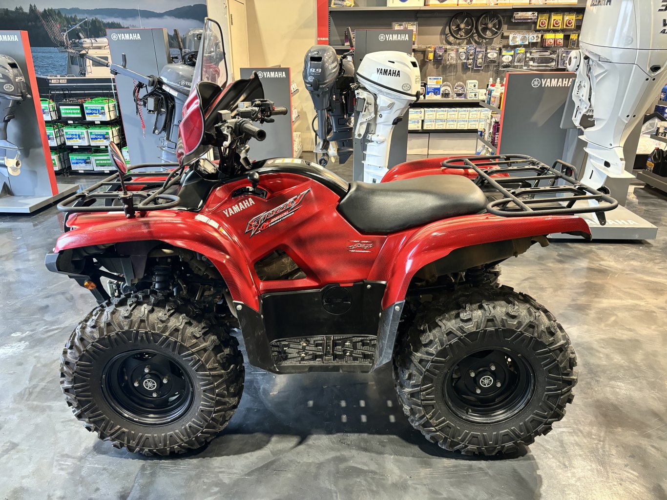 Drivetrain: Yamaha On-Command® pushbutton with 3-way locking differential, selectable 2WD/4WD/locked 4WD, and shaft drive.