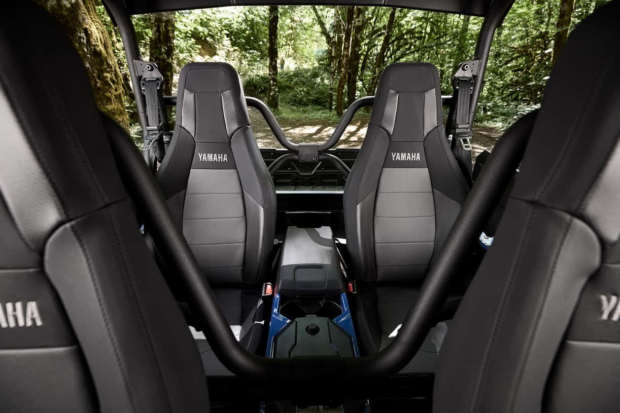 - The new Wolverine RMAX4 1000 Limited maximizes passenger comfort with full length rear doors and substantially more rear passenger space including an impressive 47% (7.5 inches) more forward leg room and 40% (5.8 inches) more side-to-side leg room when compared to previous RMAX4 models. There is also thicker, softer new knee pad material, smooth front seat backs, inset rear door speakers and new premium grab handles creating a plush, roomy interior for long days on the trail. seat belt for added comfort.