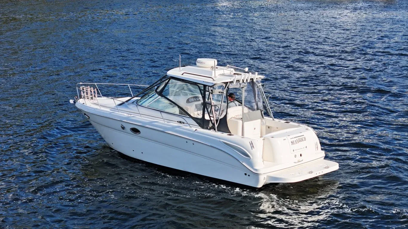 With twin MerCruiser MX 6.2 MPI Horizon engines, wide 10'6" beam, for stability, and a versatile cockpit ready for fishing or entertaining, the Sea Ray 290 Amberjack is built for adventure. Step inside to a bright, well-appointed cabin with full galley, private head, and overnight accomodations. Whether chasing the weekend bite or escaping on a family getaway, this Amberjack is turn-key and ready for success.