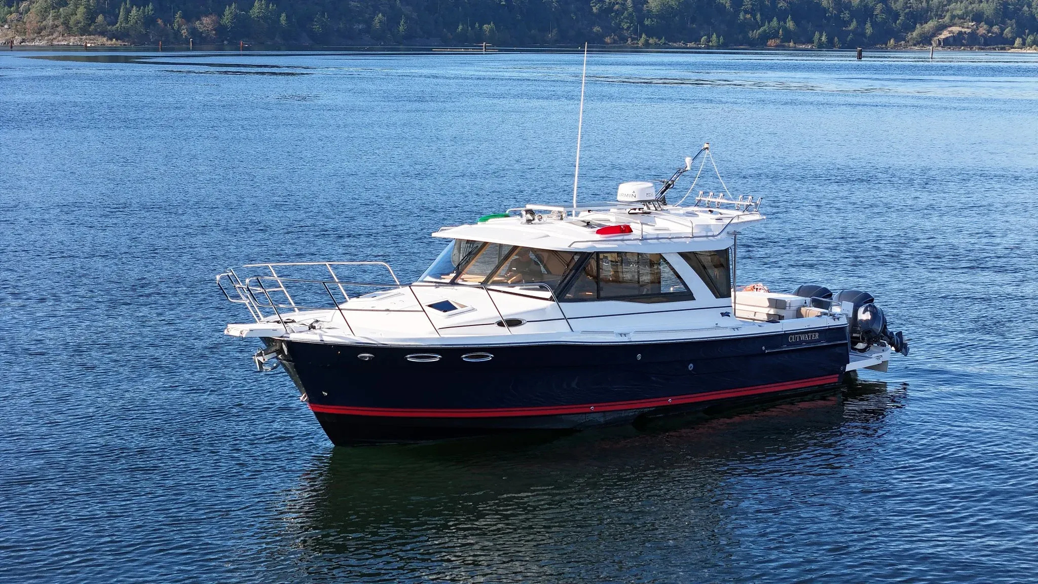 Effortless power meets refined coastal style. The C-302 Coupe is built for those who crave open-water adventure without sacrificing comfort or class. Step aboard and you'll find a bright, beautifully crafted cabin, wraparound views, and evrt touch designed for easy leisure on the water. The cockpit is ideal for fishing with it's large square footage, 30 gallon livewell, large fish boxes, rod holders, rocket launchers, and sink. Food prep is a breeze with the Euro-style galley, which is great for buffet or refreshment service. The cockpit is easily converted for entertaining with plenty of seating as well as an electric Kenyon BBQ grill. The C-302 Coupe accomodates six on three seperate berths, for exceptional privacy and comfort even on extended cruises. From sunrise runs to weekend escapes, this Cutwater delivers smooth performance, quiet confidence, and room to unwind in total comfort. Entertain, explore, or just drift — The C-302 makes every journey feel first class.