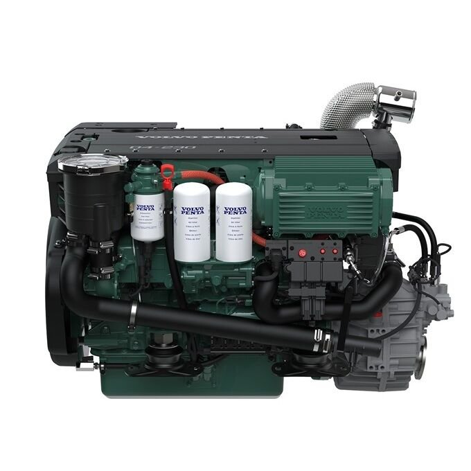 | The Volvo Penta D4 is designed for reliability, fuel efficiency, and reduced maintenance costs. This in-line 4-cylinder, 3.7-liter diesel engine features common-rail fuel injection, double overhead camshafts, and a turbo. |