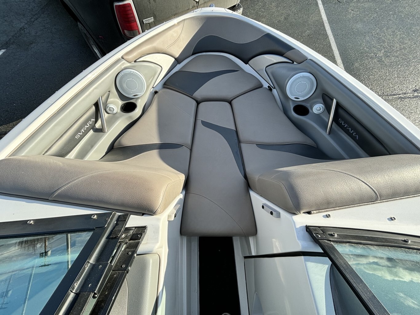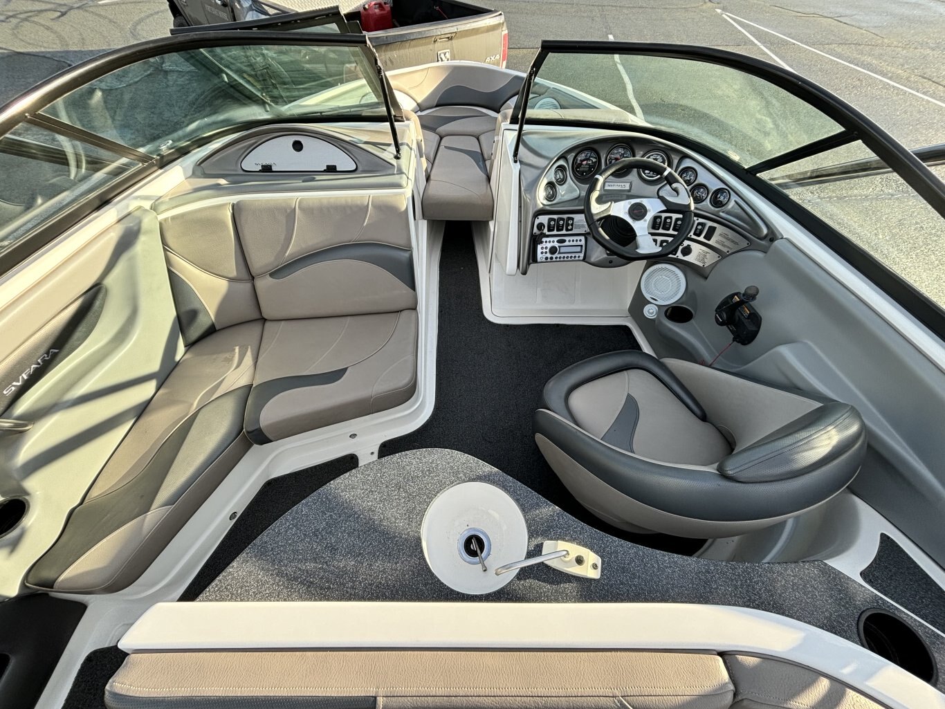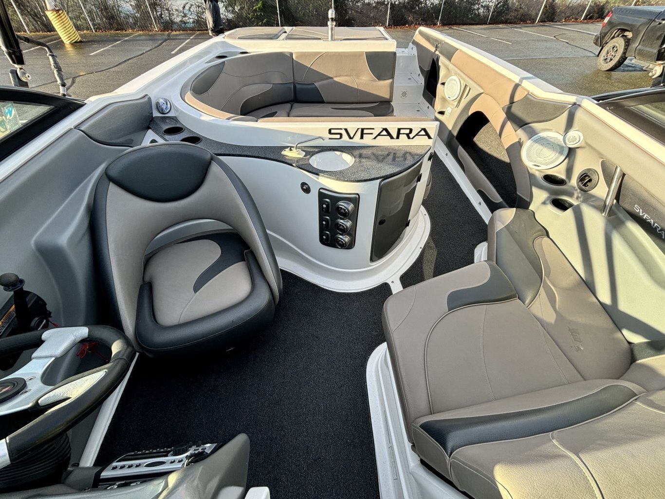 Experience summer on the lake like never before with this 2007 Svfara SV2. Built for speed, stability, and comfort, this boat is perfect for everything from relaxing cruises to high-energy water sports. It's sleek hull design ensures smooth rides even on choppy water, while the spacious U-shaped wraparound seating lets family and freinds enjoy the ride in comfort. Powered by a reliable 330HP inboard engine, the 24-foot SV2 delivers plenty of performance for wakeboarding, tubing, or just exploring the lake.
